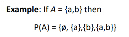 - Power set : 주어진 집합의 모든 부분 집합들로 구성된 집합
