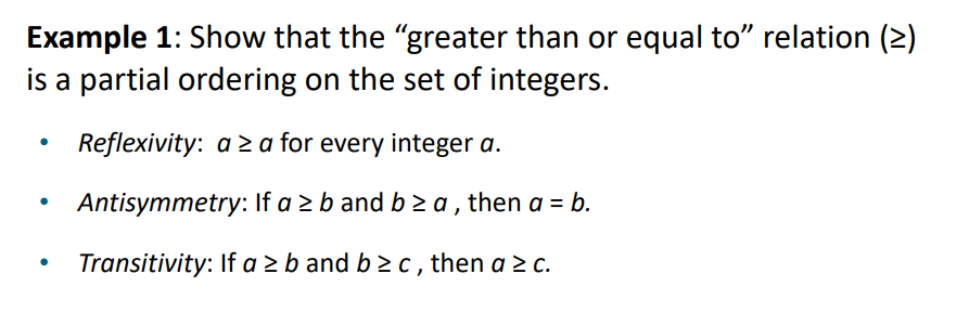 즉 원소 a랑 b가 있는 집합이 [ Reflexive * Antisymmetric * Transitivity ]라면 비교가 가능하다.