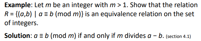 (a,b) | a ≡ b( mod M) , 즉 [ a를 m으로 나누었을 때 나머지= b를 m으로 나누었을 때 나머지 ] 이다.
