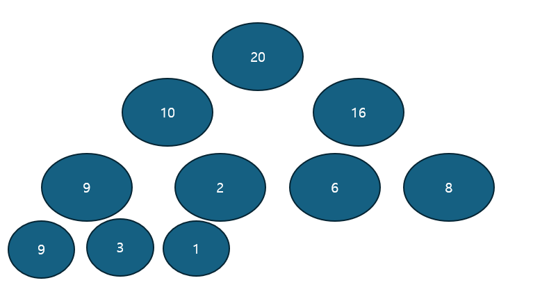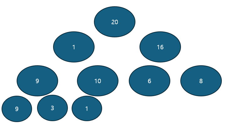 이럴 때는 밑에서부터 삼각형으로 Heap을 만들어야 한다.