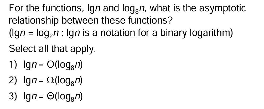 lgn = log8 n 보다 3배 빨리 증가함
