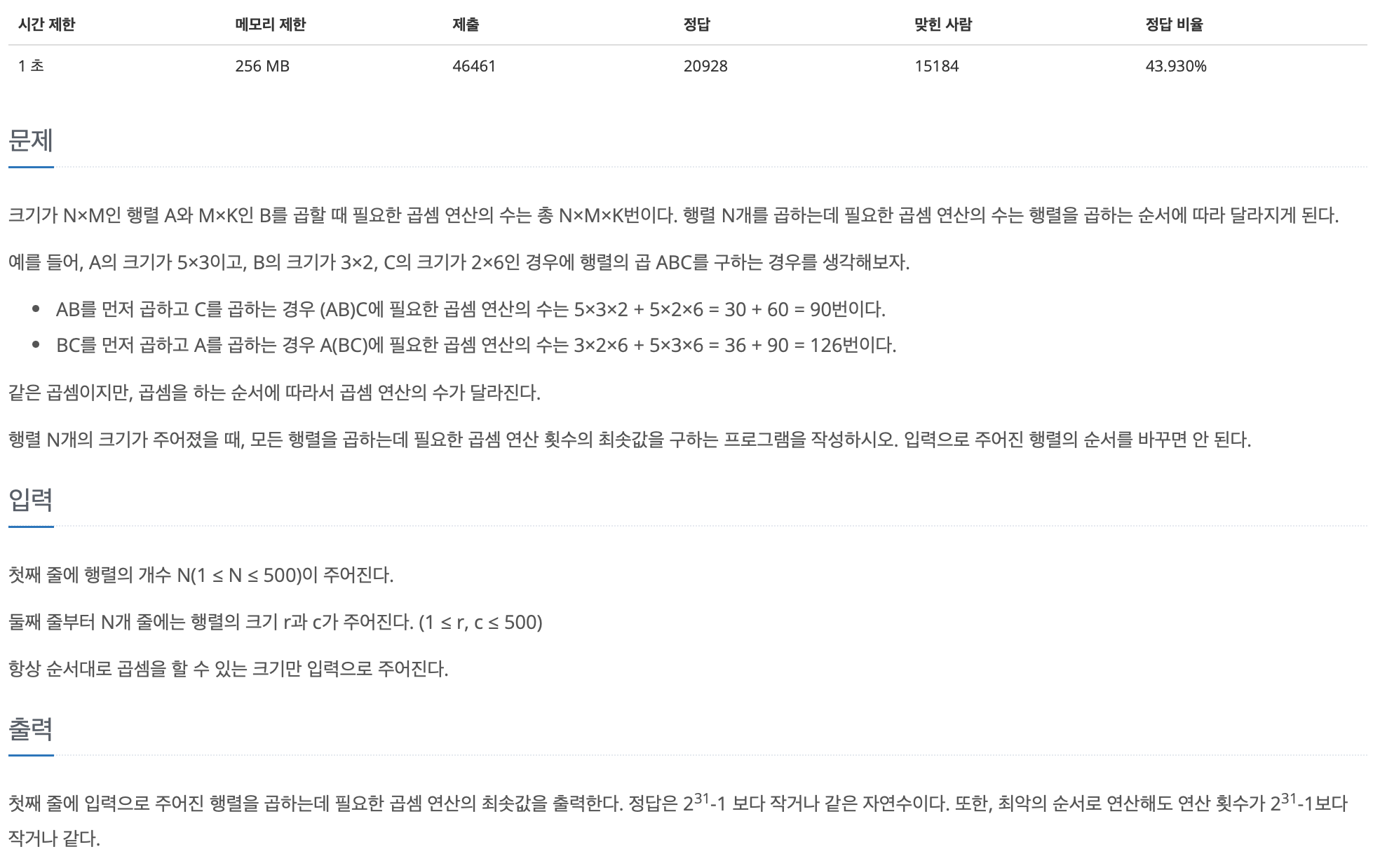 연산 횟수를 가장 작은 값으로 해서 모든 행렬을 곱해라