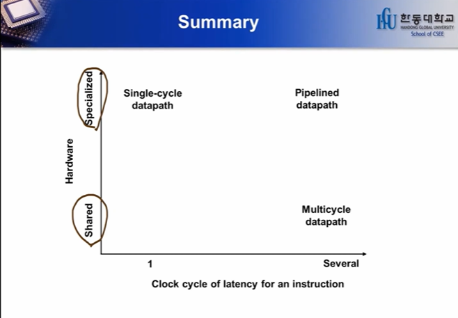 - Pipeline : 하드웨어 공유하다가 hazard 생길 수도 있음.